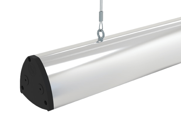 NeoShape-armaturet hænger elegant nedsænket i wire. Som tilkøb kan armaturet leveres med 2 meter wiresæt. Ledningen løber som udgangspunkt ud af endcappen, men den kan flyttes, så den løber ovenud af armaturet – sammen med wireophænget. Hvis NeoShape hænger over et arbejdsbord kan printene i armaturet placeres i midten. Det reducerer UGR-værdien og giver et pænere udseende.